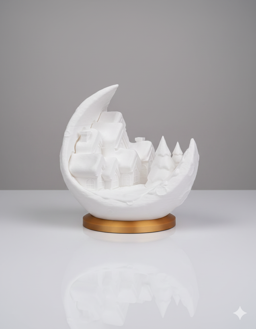 Verleihe deinem Zuhause eine traumhafte, winterliche Stimmung mit diesem einzigartigen Licht-Gehäuse, das ein filigranes Dorf auf einer sanften Landschaft darstellt.
